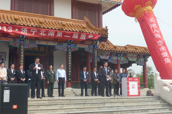 五•一小长假首日,也正是济宁市第二届“天地人和,亲水爱鱼”为主题的放鱼节活动启动,黄金周假期与活动的同期举行,为北湖景区赢得了超好的人气,景区提前进入客流高峰。
